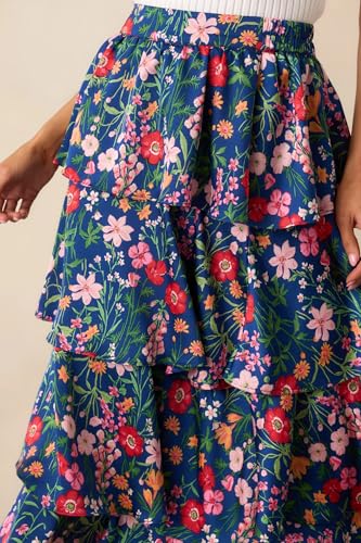 Floral Maxi Skirts for Women Summer Elastic High Waist A-Line Boho Beach Long Skirts Ruffle Flowy Skirts Streetwear 3