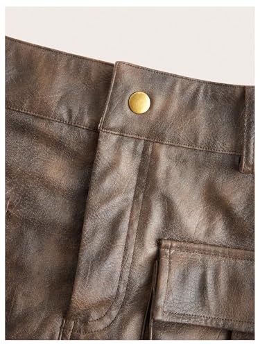 More information about MakeMeChic Women's Faux Leather Cargo Skirt Mid Waist Flap Pocket Y2k Mini Skirts