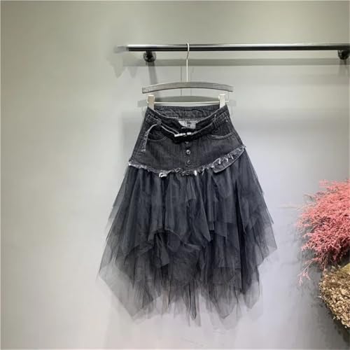 More information about Women’S High Waist Denim Mini Skirt Irregular Mesh Patchwork Tassel Detail Club Party Short Jean Bottoms