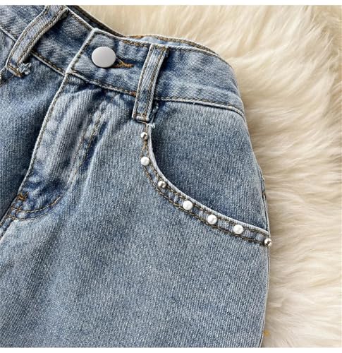 Women Pearls Beading Denim Skirts Summer High Waist Split Ripped Holes Midi Jean Skirt 6