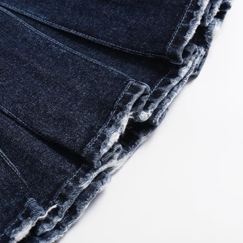 Women's Casual High Waisted Pleated Denim Skirt Frayed Mini A-Line Jean Skirt 6