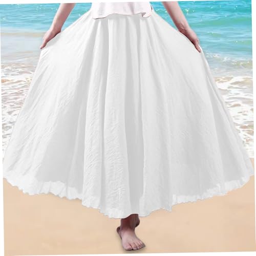 More information about Linen Skirts for Women, Linen Maxi Skirt White Bohemian Long Skirt with Pleats A-Line Double Layer Summer Elastic Waist 33.5 in Long Flowy Beach Maxi Dress