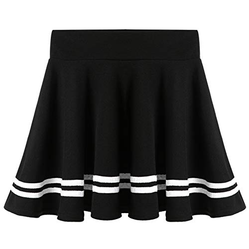 CHICTRY Women's Basic Elastic High Waisted Stretchy Flared Casual Mini Striped Skater Skirt 6