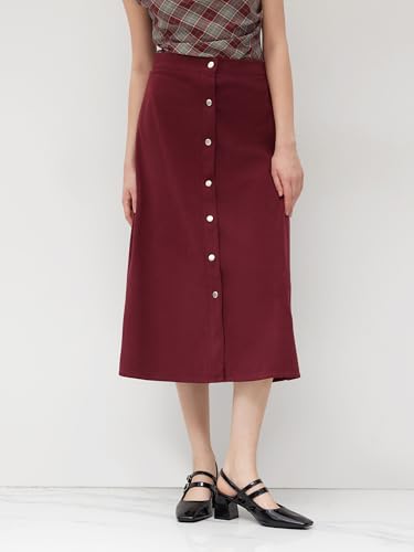 • Classic Button-Down Front: Featuring a button-down front, this skirt offers a timeless and sophisticated look; the buttons add a touch of visual interest and allow for adjustable styling, enabling you to customize the skirt's fit and create different looks, perfect for dressing up or down as desired