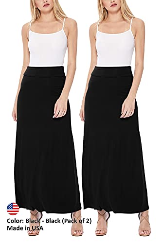 HOT ! Women's Casual High Waist A-Line Loose Fit Lounge Maxi Long Skirt S-3XL (Pack 0f 2)