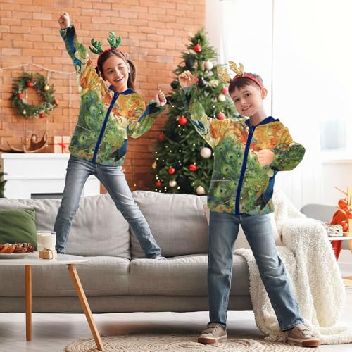 Phoenix and Peacock Artwork Design Toddler Fleece Jacket Girl Boys Hooded Fleece Jacket Coat 4