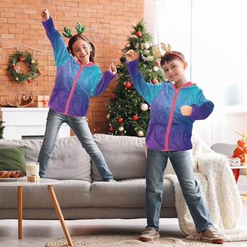 GuoChe Abstract Blurred Teal Purple Blue Boy Hooded Fleece Jacket 4