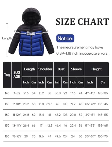 SEAUR Kids Lightweight Puffer Jacket for Boys Girls Hooded Quilted Down Coat Winter Warm Thin Outerwear Color Block Design 6