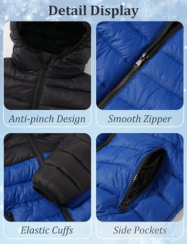 SEAUR Kids Lightweight Puffer Jacket for Boys Girls Hooded Quilted Down Coat Winter Warm Thin Outerwear Color Block Design 3
