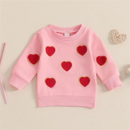 Baby Girls Heart Printed Sweatshirts Toddler Kids Cute Graphic Crewneck Long Sleeve Pullover Sweater Daily Birthday Outfits 6