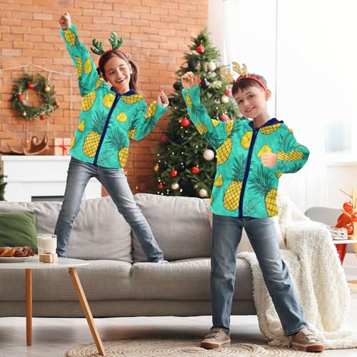 HOT ! Pineapple Slices on Turquoise Toddler Fleece Jacket Girl Boys Hooded Fleece Jacket Coat Warm Outwear Zip-up 3-10T