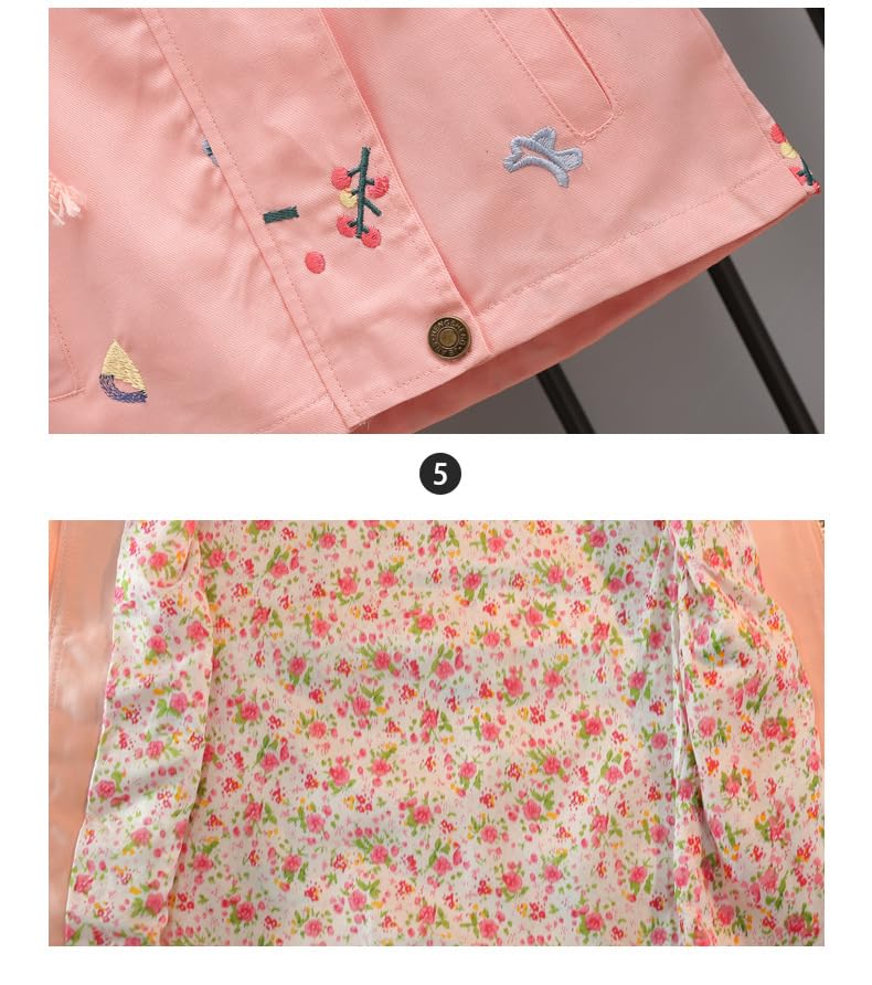 Girl's Hooded Jackets Lightweight Embroidery Printed Trench Coat Windbreaker for Girls 5