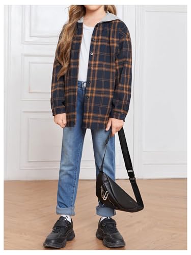 More information about Milumia Girl's Plaid Print Long Sleeve Hoodie Jacket Hooded Neck Button Down Outerwear