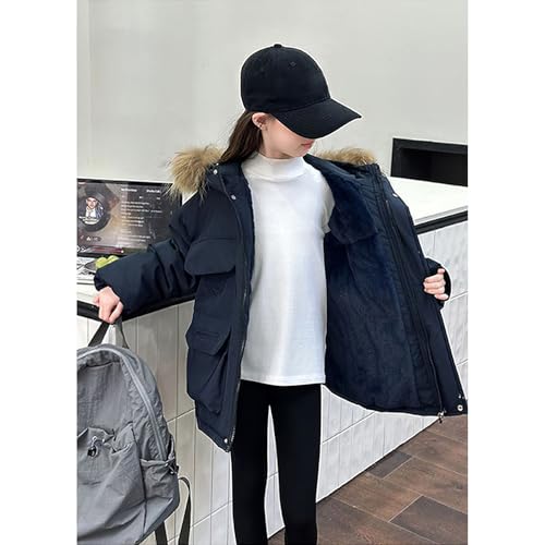 Girls Parka Coat Faux Fur Hooded Jacket Winter Zipper Overcoat Outerwear for 2-12 Years 6