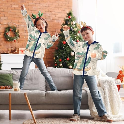 Crocodile Skateboard Girls Fleece Jacket Girls Fall Jacket Girls Zip Up Hoodie Girls Sherpa Jacket 2-10T 2