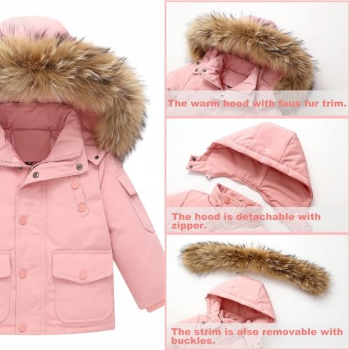 KAGAYD Little Girls Boys Bib Snow Pants and Ski Jacket Windproof Snowsuit for Kids Winter Furry Hooded Snow 5