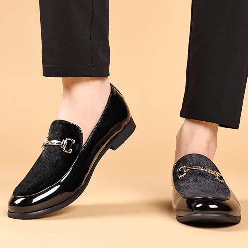 COSIDRAM Men's Casual Shoes Fashion Velvet Patent Leather Loafers Classic Gold Buckle Business Party Shoes 6