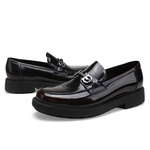 Men's Luxury Genuine Leather Dress Loafers Shoes, Casual Formal Buckle Slip on Loafers Moc-Toe Business Dress Shoes Party Wedding Slip-on Loafer for Mens 5