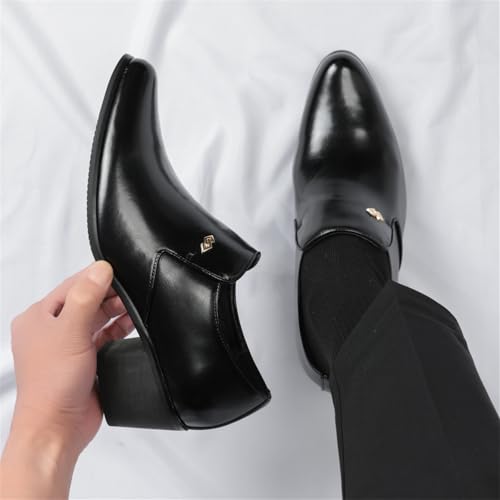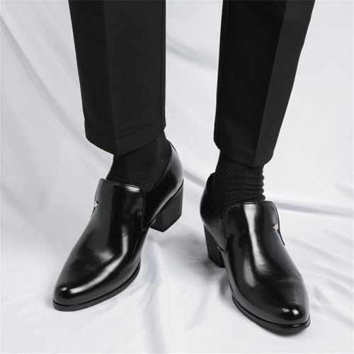 Men's Retro Leather Slip On Pointed Toe Chunky Block Heels Dress Loafers with Medium Top Comfort Non Slip Derby SHOS for Wedding Business Work Dating Party Prom Formal 6