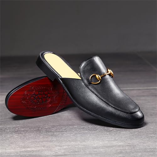 Men's Fashion Leather Slip-On Dress Mules Slippers Loafers Stylish Flats Formal Backless Loafers Work Slides Casual Open Back Sandals 6