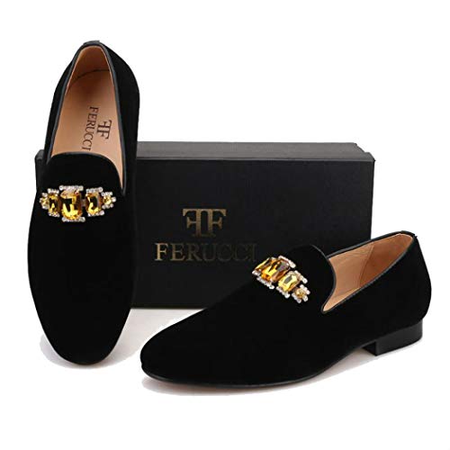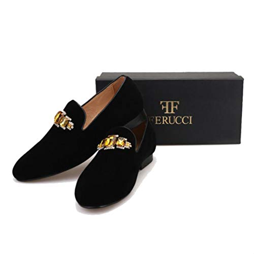 More information about FERUCCI Handmade Men Black Velvet with Gold Crystal Brooch Slippers Loafers Flats