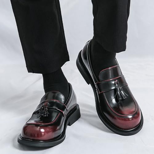 Men's Leather Tassel Slip-On Low Block Heel Loafers Fashion Comfortable Luxury Round Toe Low Top Chunky Low Heel Penny Loafers Casual Work Office Business Dress Shoes 7