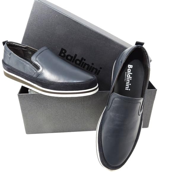 Baldinini 🇮🇹 Men's Navy Blue Soft Leather Comfort Summer Flat Loafers 1