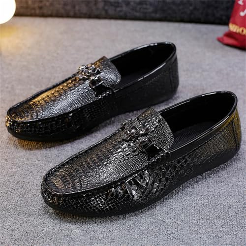 HOT ! Men's Crocodile Embossed Leather Loafers Comfortable Flat Sole Dress Shoes for Business Casual Driving Daily Wear (Black,10)