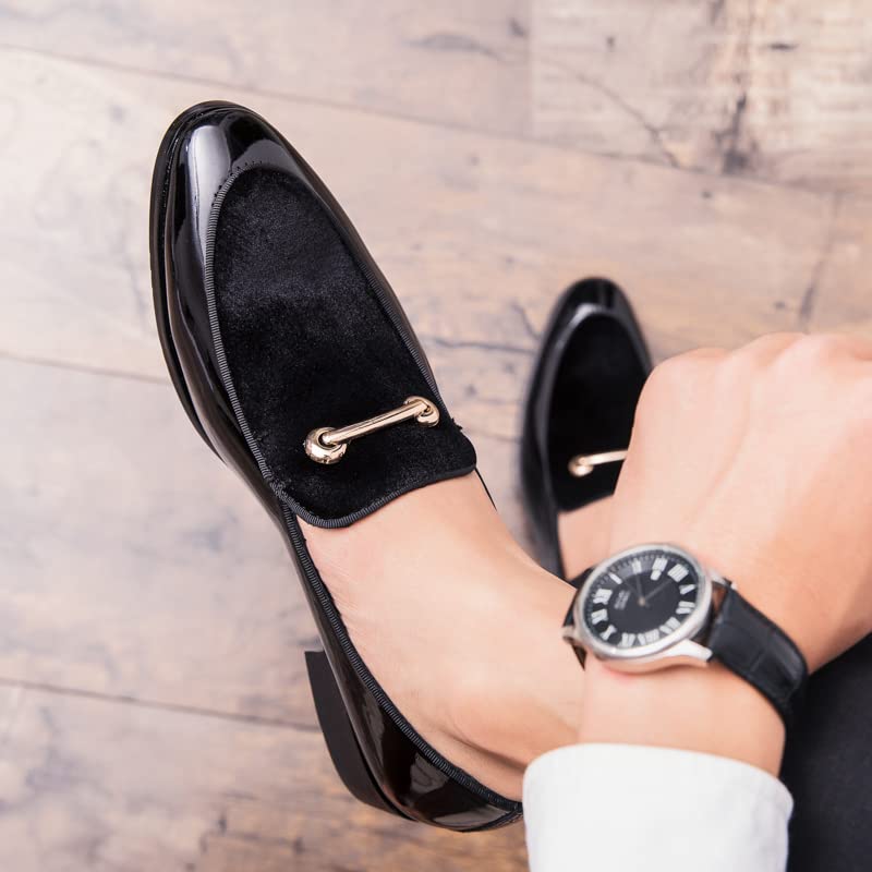 More information about Men's Velvet Patent Leather Slip-on Dress Shoes Business and Parties Formal Events Smoking Slippers Loafers for Party Wedding Prom Size 38-47