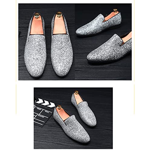 Men's Leather British Fashion Pointed Toe Sequined Loafers,Metallic Luxury Texture Slip-On Glitter Fashion Casual Dress Shoes 7