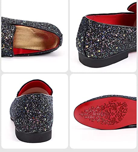 • 【Shiny Dress Shoes for Men】Suitable for any occasion, a must-have piece to elevate your overall look, slip-on glitter loafers, the sequins don't come off easily, all day care, the sturdy rubber outsole extends the durability and durability of these shoes service life.