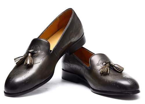 Santimon Mens Loafers Dress Casual Slip-On Tassel Loafer Fashion Wedding Tuxedo Moccasin Genuine Leather Formal Business Penny Loafers Comfortable Slipper Shoes for Men 6