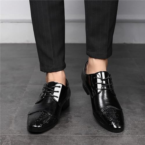 Men's Vintage Patent Leather Pointed Toe Oxford Shoes Dress Shoes Formal Business Casual Lace Up Shoes for Men 6
