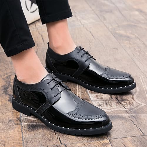 Men's Patent Leather Lace Up Dress Oxford Shoes Fashion Splicing Comfort Non Slip Soft Business Shoe Casual Work Outdoor Brogue Oxfords 7