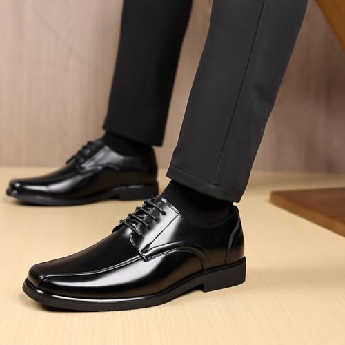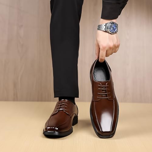 Men's Leather Business Square Toe Block Heel Oxfords Fashion Comfortable Lace Up Low Heel Dress Derby Shoes Office Wedding Daily Party Shoes 6