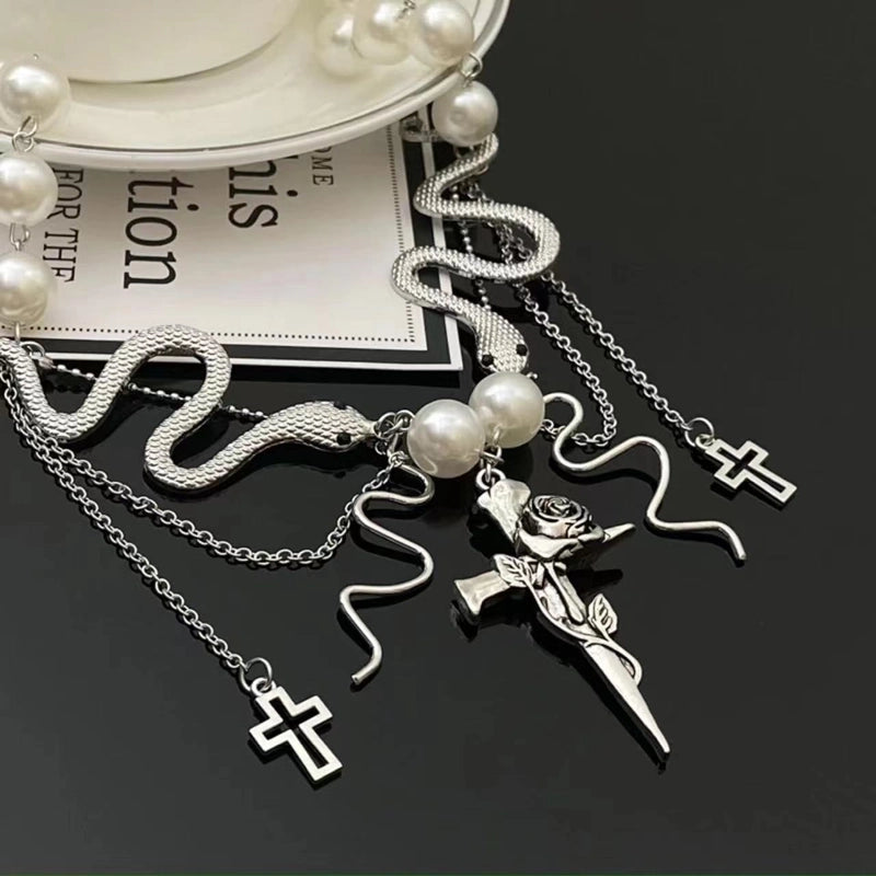 HOT ! Sweet Cool Style Cross Rose Snake Imitation Pearl Alloy Plating Women's Necklace