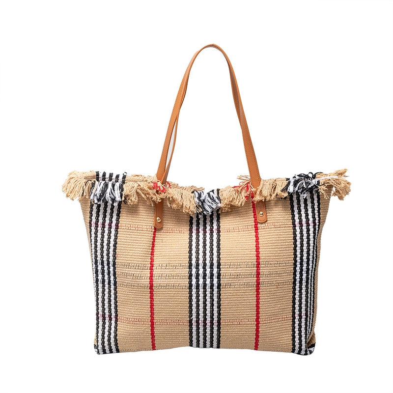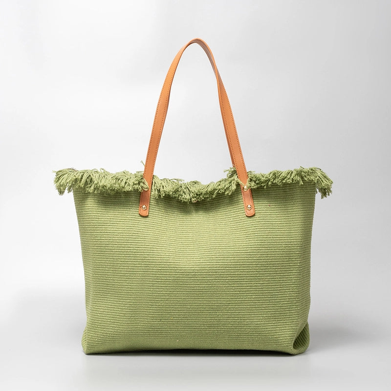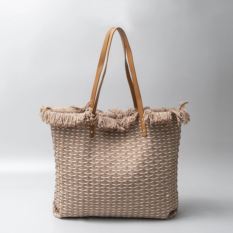 More information about Women's Cotton Lattice Solid Color Vintage Style Square Magnetic Buckle Tote Bag