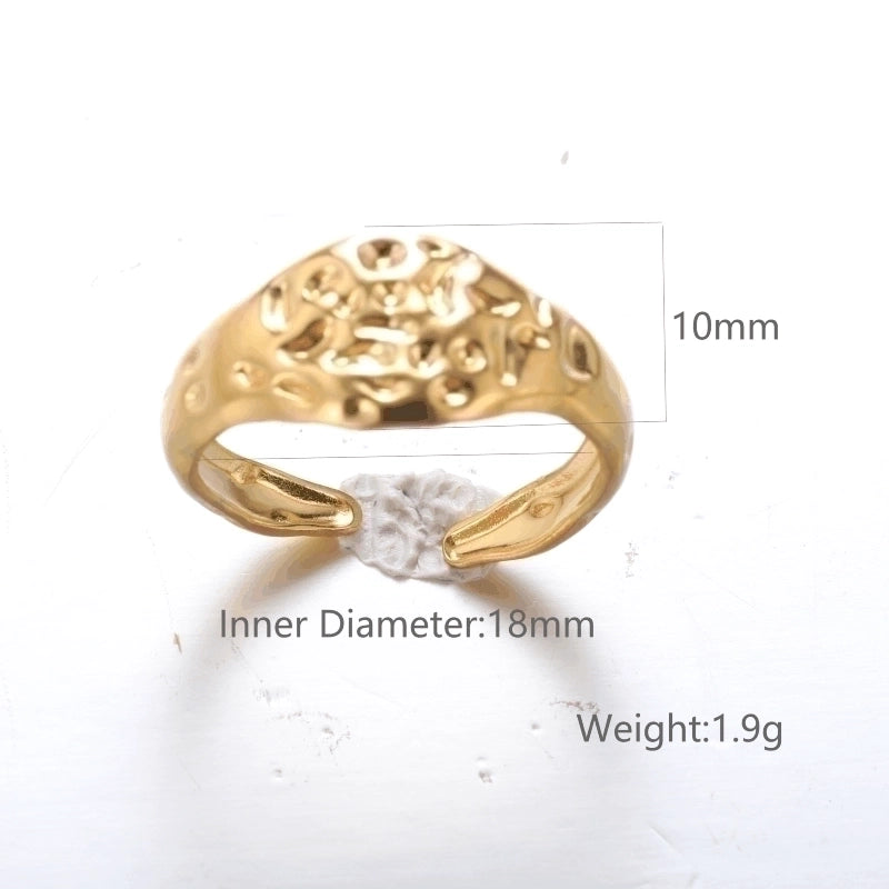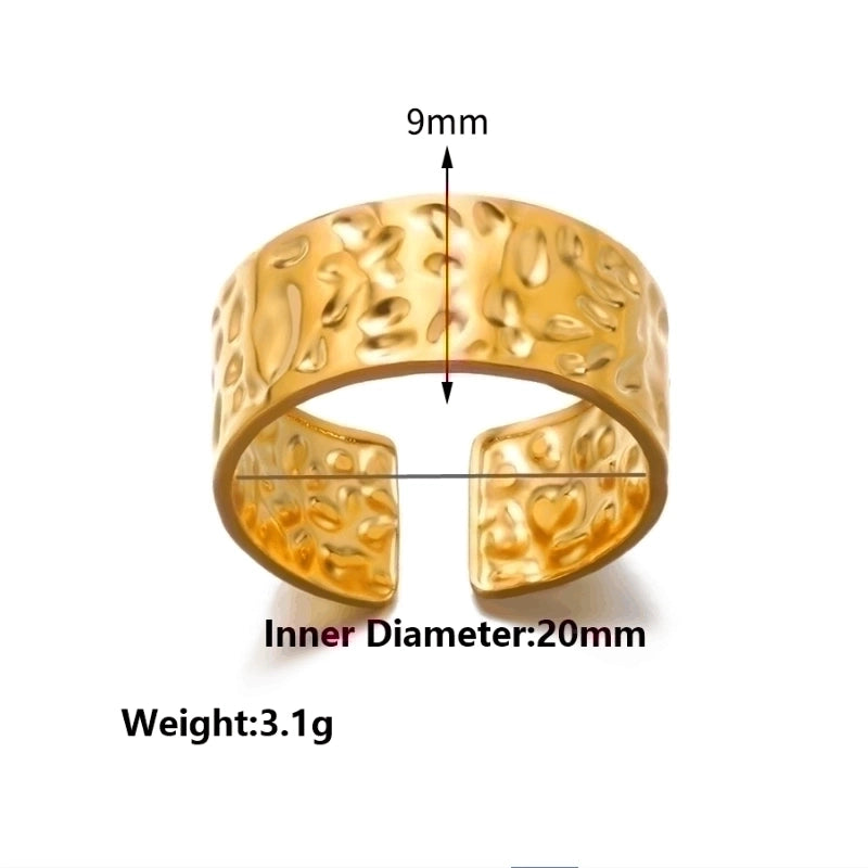 2 Pieces Vintage Style Exaggerated Minimalist Solid Color Stainless Steel Metal 18k Gold Plated Open Rings 11
