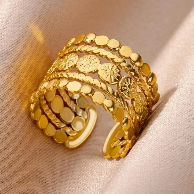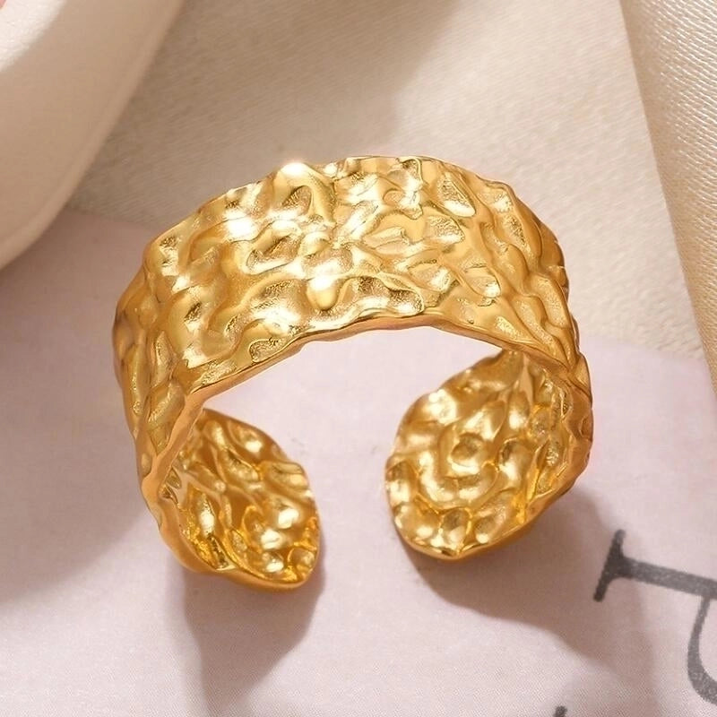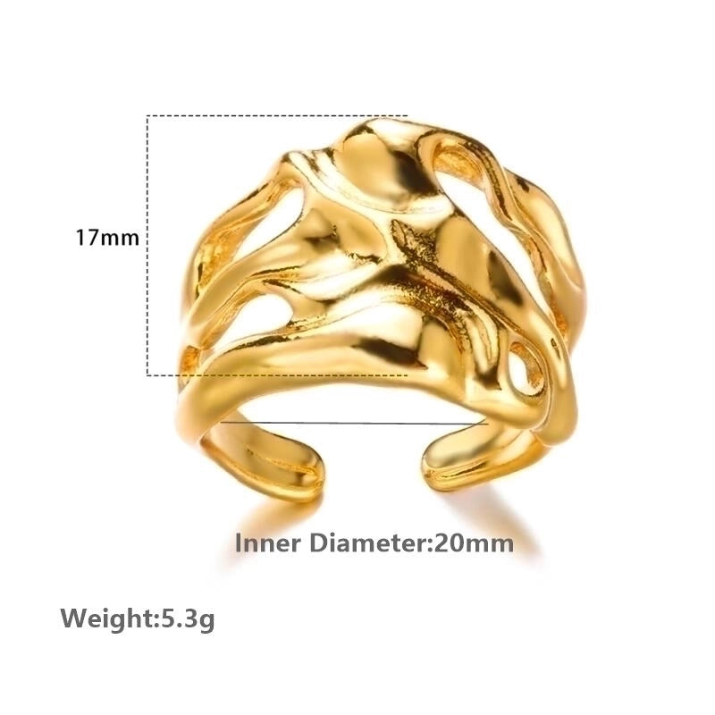 More information about 2 Pieces Vintage Style Exaggerated Minimalist Solid Color Stainless Steel Metal 18k Gold Plated Open Rings