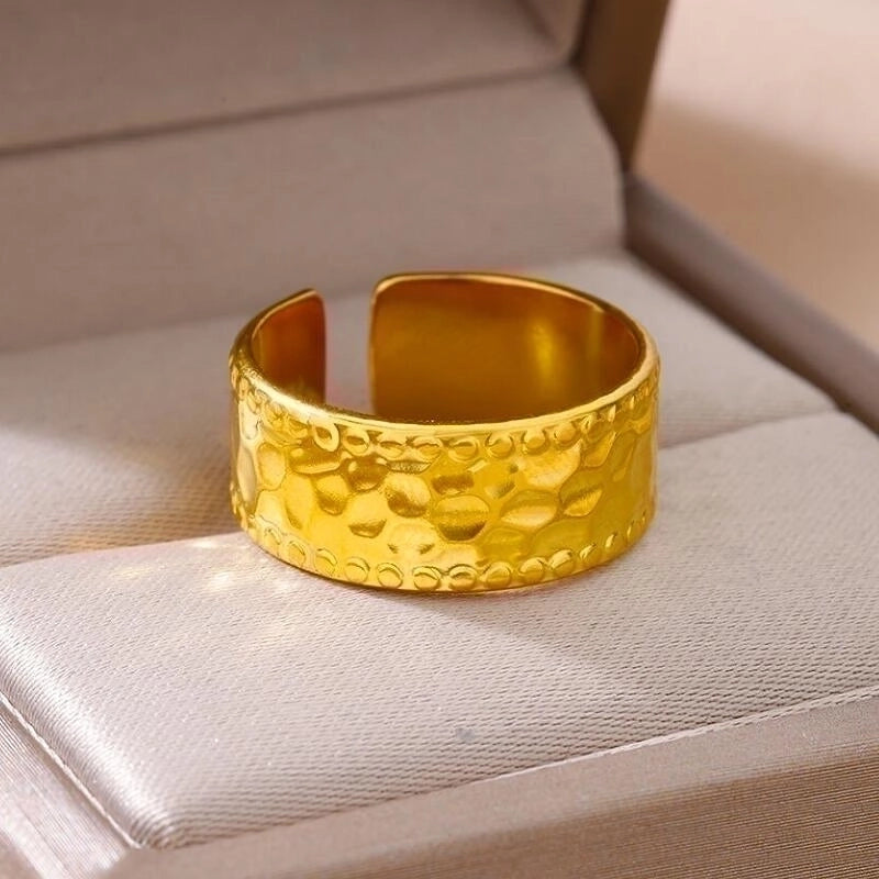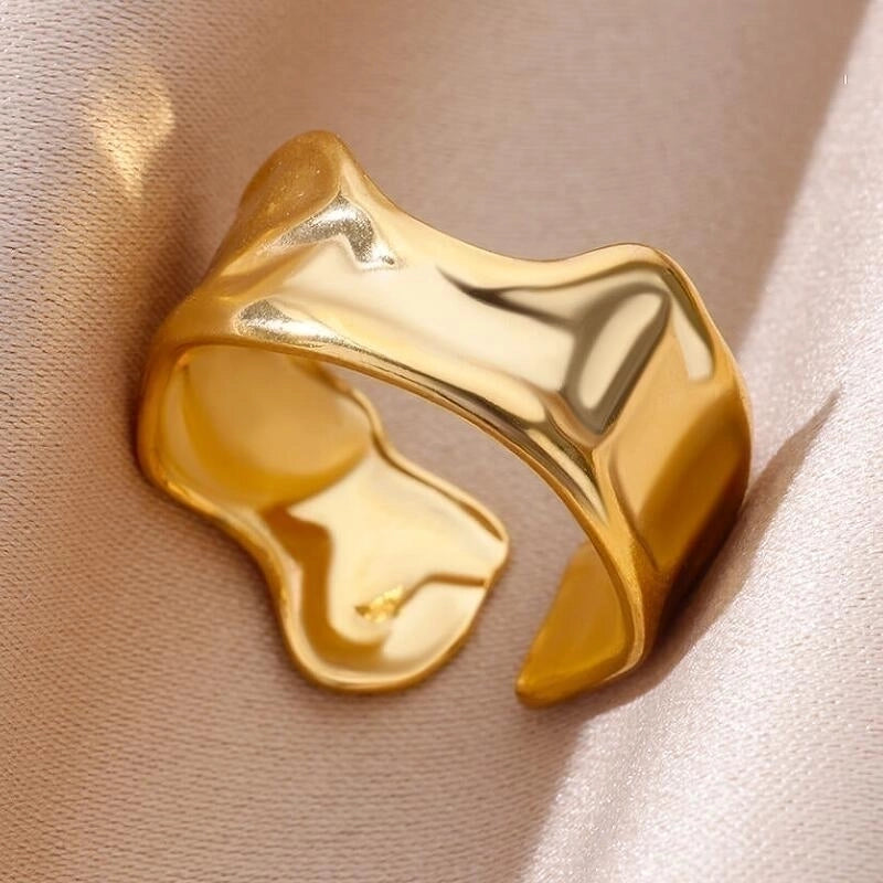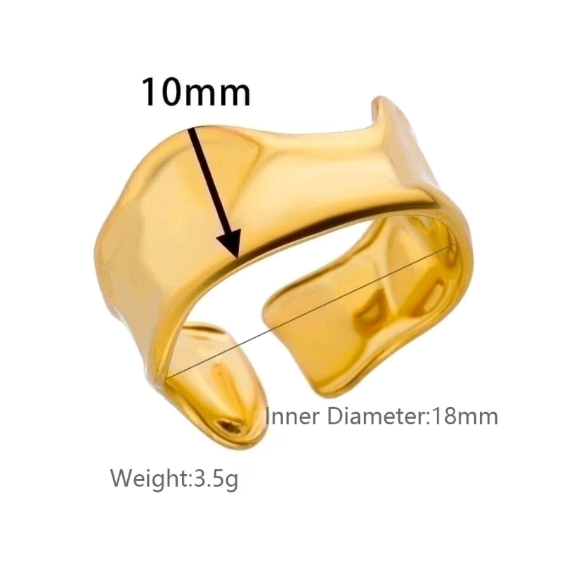 HOT ! 2 Pieces Vintage Style Exaggerated Minimalist Solid Color Stainless Steel Metal 18k Gold Plated Open Rings