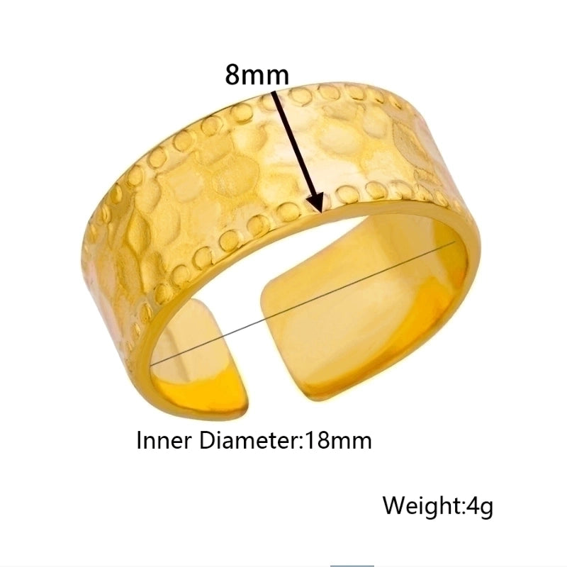2 Pieces Vintage Style Exaggerated Minimalist Solid Color Stainless Steel Metal 18k Gold Plated Open Rings 8