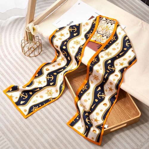 100% Silk Scarf for Women 59”x 5.9” Hair Scarf for Women Fashion Satin Headwrap Lightweight Neck Tie 7