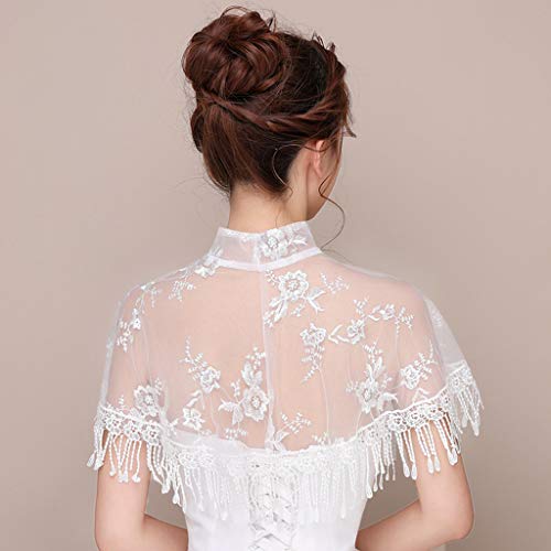 More information about Wedding Shawl High Neck for Jacket Wedding Floral Lace Bridal Wraps Cape Women S, 30cm, White
