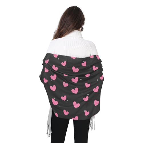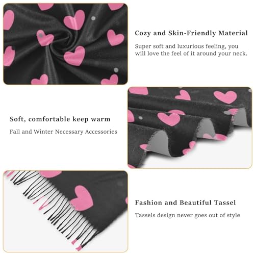ALAZA Pink Heart Polka Dot Black Women’s Scarf Soft Warm Long Scarves Shawl Wrap for Winter Autumn Home Office Travel 2