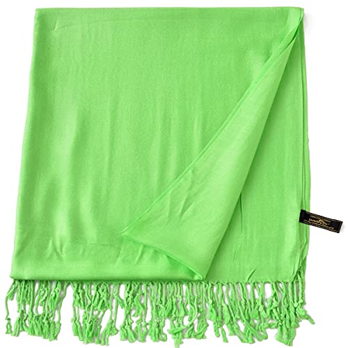 CJ Apparel Bright Green Solid Color Tassels Design Nepalese Shawl Seconds Scarf Wrap Stole Throw Head Wrap Pashmina Hand Made in Nepal New 2
