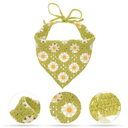 GALPADA Fashion Scarf Crochet Bandana Floral Head Kerchief Flower Pattern Hair Scarf Knitted Hair Scarves Summer Sunflower Tie Bcak Headwrap for Women Girls Green Women's Scarfs 6