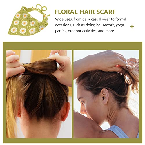 GALPADA Fashion Scarf Crochet Bandana Floral Head Kerchief Flower Pattern Hair Scarf Knitted Hair Scarves Summer Sunflower Tie Bcak Headwrap for Women Girls Green Women's Scarfs 2