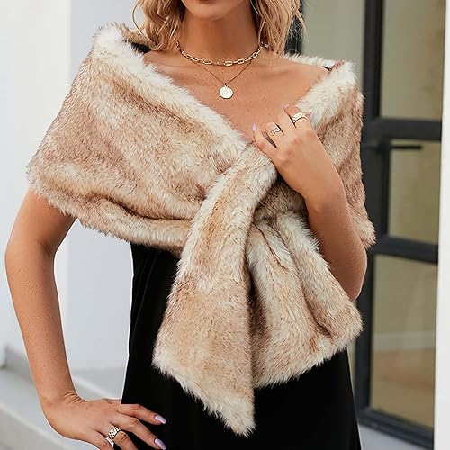 Women Faux Fur Long Shawl Wrap Scarf Shrug For Elegant Bridal Wedding Party Fashion Ladies Christmas Gifts 6