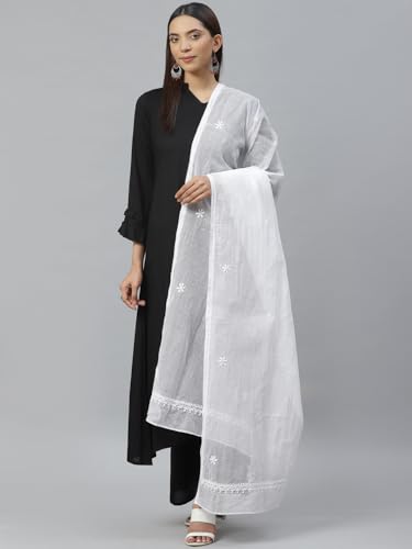 Ada Indian Hand Embroidered Chikankari Cotton Blend Dupatta Stole Scarf for Women A511111 White 1