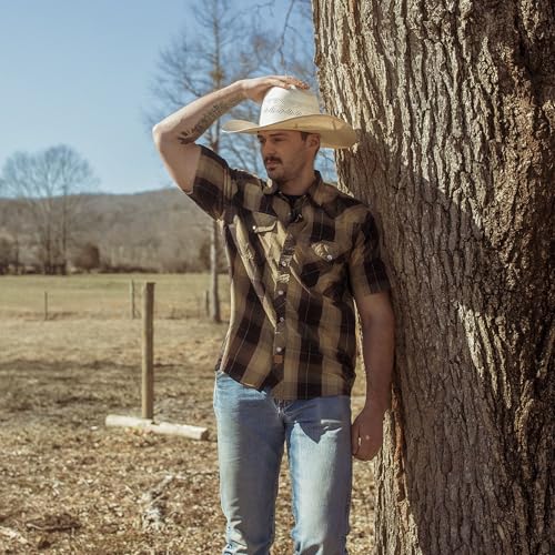 Dubinik® Western Shirts for Men Short Sleeve Plaid Pearl Snap Shirts for Men Button Up Shirt Cowboy Casual Work Shirt 5